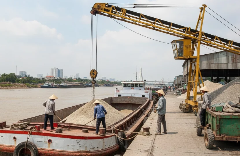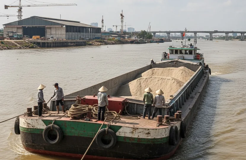 Việc vận chuyển bằng sà lan giúp giảm áp lực cho đường bộ, hạn chế hao hụt và phù hợp cho các dự án dài hạn hoặc vận chuyển theo lô lớn.